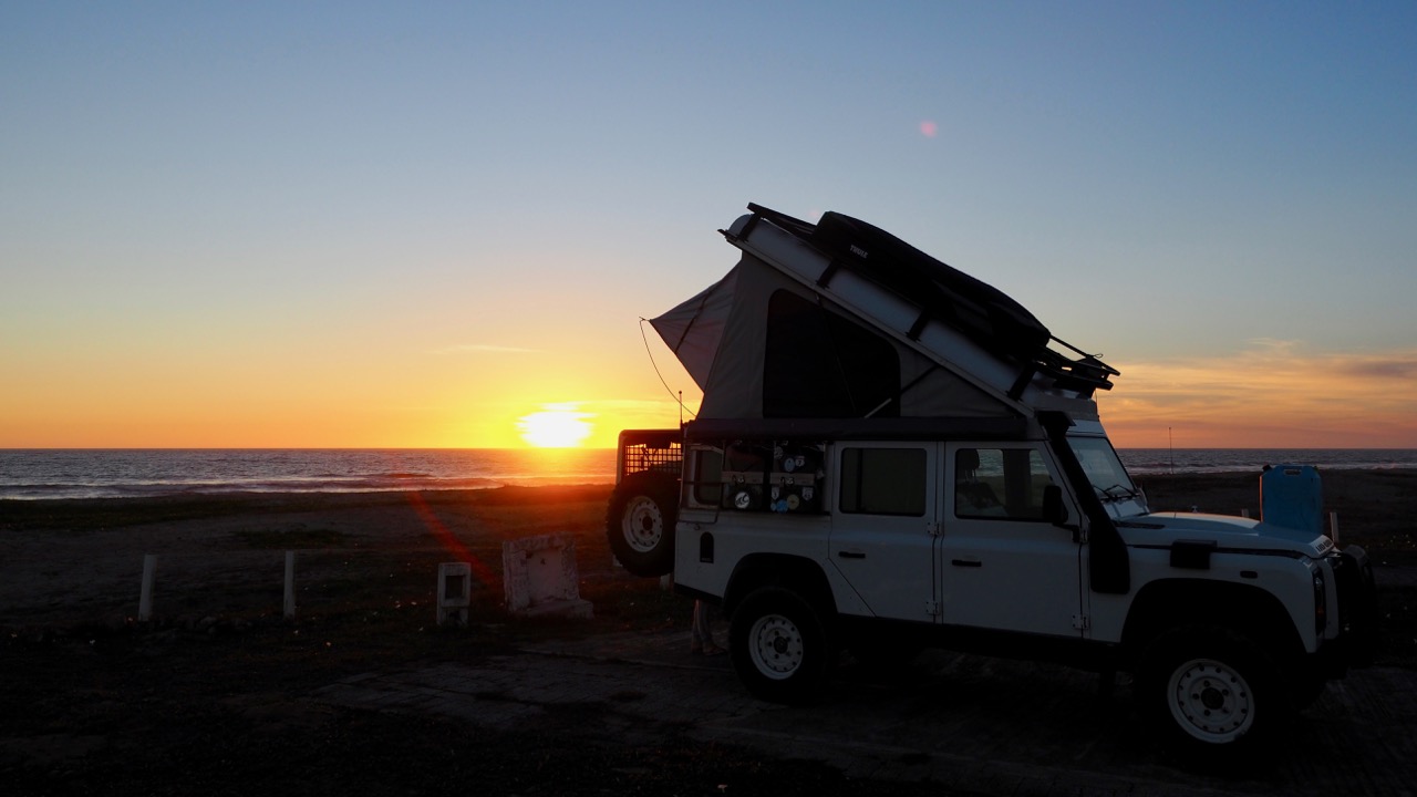 Von Tequila ging es zurück ans Meer. Auch wenn die Festland-Küste noch nicht mit guten Kitesurf- Bedingungen aufwarten konnte, freuten wir uns tierisch, die Füße endlich wieder in den Sand stecken zu können. Wir campten auf einem Campingplatz direkt am Strand, der so einsam lag, dass es sich fast wie freies Camping anfühlte. Bei einem Strandspaziergang fanden wir sogar ein kleines Seepferdchen im Sand, dass wir (hoffentlich) retteten indem wir es wieder ins Meer brachten. Von hier buchten wir für uns die Fähre auf die Baja California, die Halbinsel, die sich südlich von Kalifornien im äußersten Westen Mexikos erstreckt. Dort gibt es DEN Kitespot „La Ventana“ und wir beschlossen dort noch das Ende der Haupt-Wind-Saison mitzunehmen und früher als eigentlich geplant überzusetzen. Nach den schlechten Kite-Bedingungen in Kolumbien wollen wir uns endlich mal wieder so richtig verausgaben und verbessern, denn so viel Zeit werden wir nur selten wieder in das Hobby investieren können. Mit der Fähre soll es in einer 13-stündigen Fahrt über den Golf von Kalifornien zu unserer letzten Station in Lateinamerika gehen. Wir sind sehr gespannt auf die Halbinsel, von der uns so viele andere Reisende vorgeschwärmt haben.